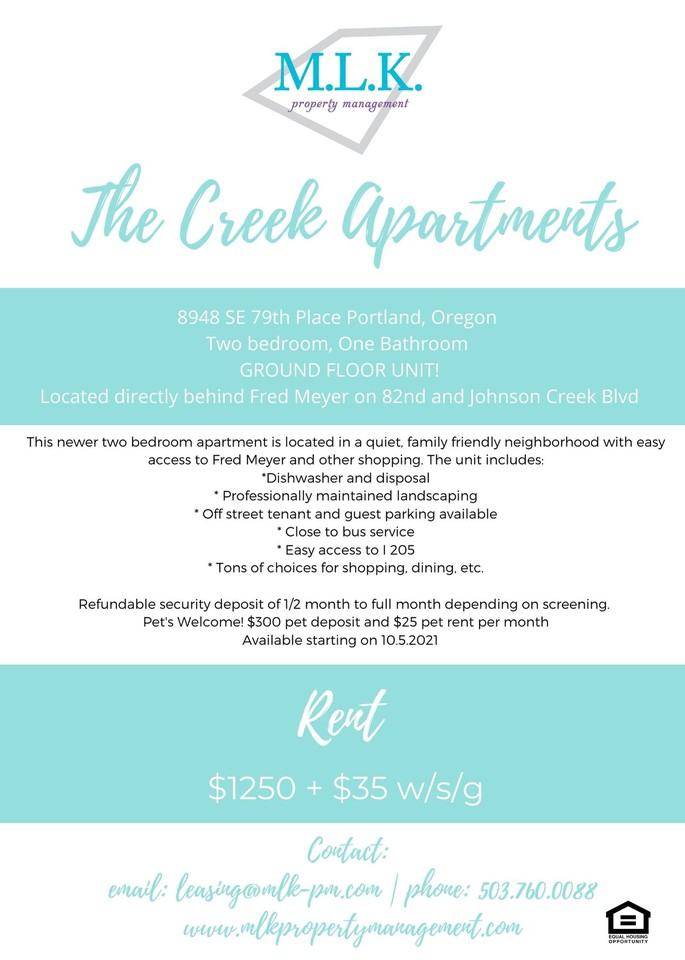 The Creek Apartments 8950 Southeast 79th Place 8950 Milwaukie OR is a rental apartment building with 1 floorplan available. Special Announcement Jun 03 2020 The health and safety of our team members residents and future residents is our top priority. These Portland Oregon apartments are perfect for everyone as.